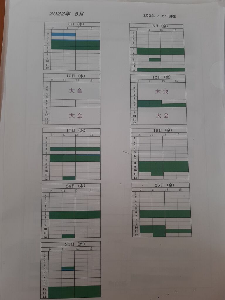 10月の入力をお願いします。水曜5、12、19、26 金曜7、14、21、28です。よろしくお願いいたします。役員