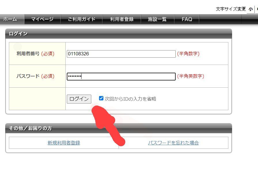 ③始めに小枠で拾う方の、ID番号とパスワードを聞いて来ます。それを入力して、ログインボタンを押してください。