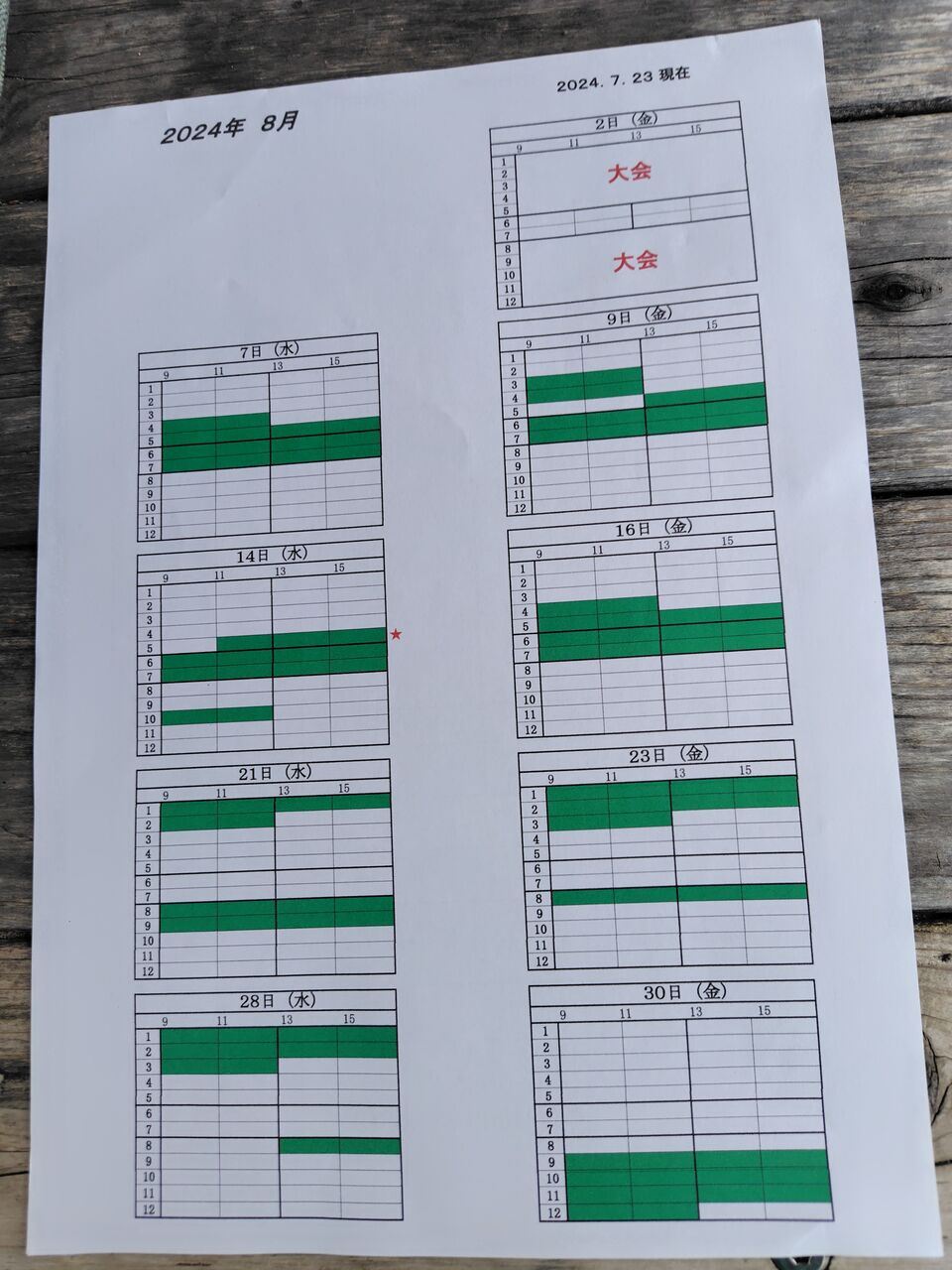 8月のコート予定表です。